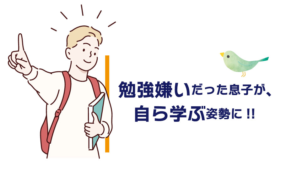 塾に通わせてから、学校のテストで10点以上アップしました。塾の先生に教えてもらった勉強法がとても役立っているようです。そして、勉強のやり方が身につき家でも自分で勉強できるようになり、成績も安定してきました。